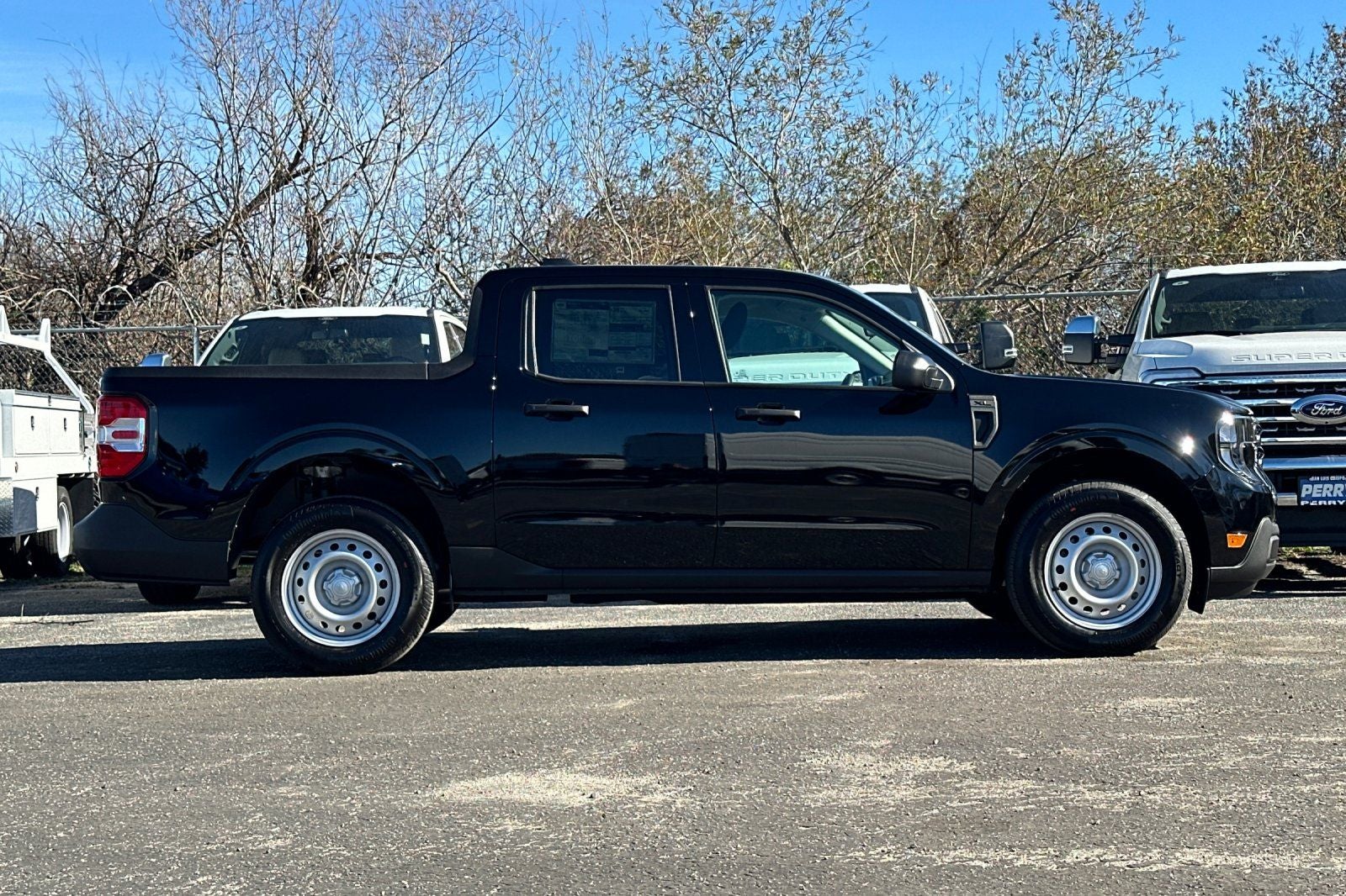 2.5L I-4 Hybrid, 2.91 Axle Ratio, 4-Wheel Disc Brakes, 6 Speakers, ABS brakes, Air Conditioning, AM/FM radio: SiriusXM with 360L, Apple CarPlay/Android Auto, Auto High Beams, Auto High-beam Headlights, Automatic temperature control, Brake assist, Bumpers: body-color, Compass, Delay-off headlights, Driver door bin, Driver vanity mirror, Dual front impact airbags, Dual front side impact airbags, Electronic Stability Control, Emergency communication system: SYNC 4 911 Assist, Exterior Parking Camera Rear, Ford Connectivity Package (1-Year Included), Front anti-roll bar, Front Bucket Seats, Front Center Armrest, Front Cloth Bucket Seats, Front reading lights, Front wheel independent suspension, Fully automatic headlights, Illuminated entry, Internet access capable: 5G Modem - Ford Connectivity Package, Intersection Assist, Knee airbag, Lane-Keeping System, Low tire pressure warning, Occupant sensing airbag, Outside temperature display, Overhead airbag, Overhead console, Panic alarm, Passenger door bin, Passenger vanity mirror, Power steering, Power windows, Pre-Collision Assist with Automatic Emergency Braking, Radio data system, Radio: AM/FM Stereo with 6 Speakers, Rear anti-roll bar, Rear step bumper, Rear-View Camera, Remote keyless entry, SiriusXM with 360L, Speed control, Speed-sensing steering, Steering wheel mounted audio controls, SYNC 4 with Enhanced Voice Recognition, Telescoping steering wheel, Tilt steering wheel, Traction control, Trip computer, Wheels: 17 Steel with Sparkle Silver Painted Cover, 2.5L I-4 Hybrid. Black 2026 Ford Maverick XL FWD CVT 42/35 City/Highway MPG