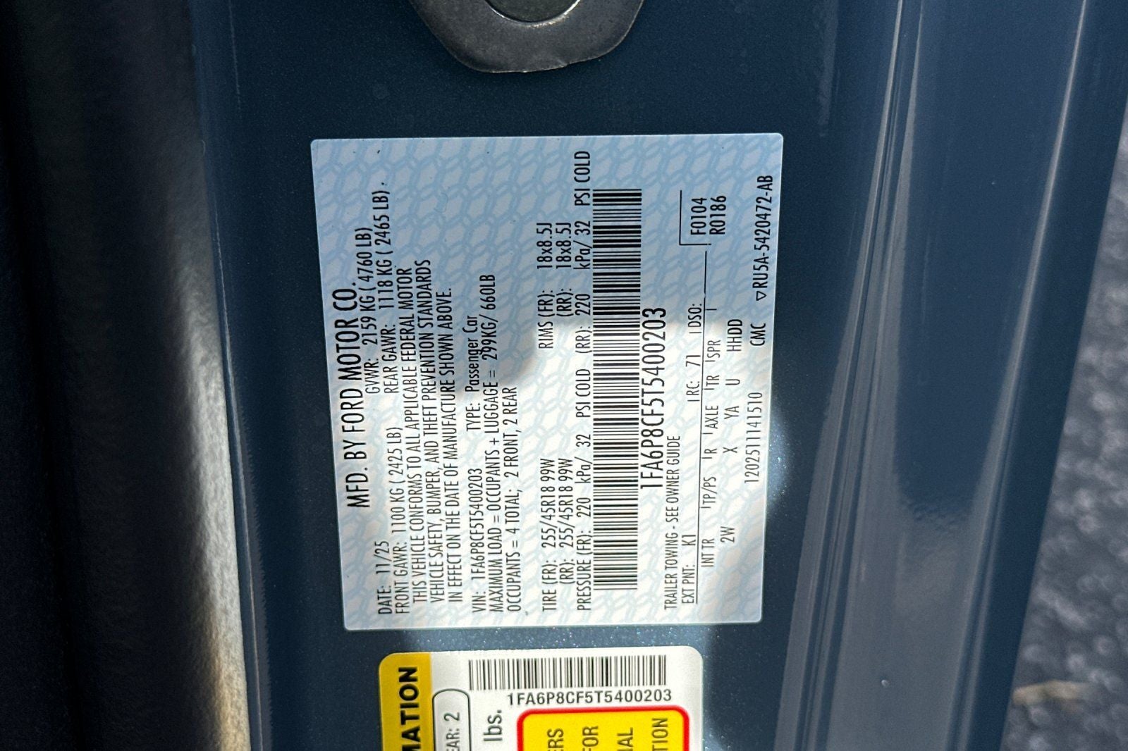 - Vehicle Name: Ford Mustang