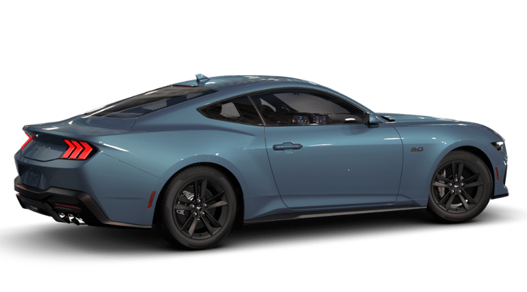 1st Row Carpeted Black Floor Mats, 4-Wheel Disc Brakes, ABS brakes, Active Valve Performance Exhaust, Air Conditioning, Alloy wheels, AM/FM Stereo, Ambient Lighting with MyColor, Auto High-beam Headlights, Automatic temperature control, Brake assist, Bumpers: body-color, Cloth/Vinyl Heated Bucket Seats, Compass, Delay-off headlights, Driver door bin, Driver vanity mirror, Dual front impact airbags, Dual front side impact airbags, Electronic Stability Control, Emergency communication system: 911 Assist, Equipment Group 301A High Package, Exterior Parking Camera Rear, Four wheel independent suspension, Front anti-roll bar, Front Bucket Seats, Front Center Armrest, Front dual zone A/C, Front reading lights, Fully automatic headlights, Illuminated entry, Knee airbag, Leather Shift Knob, Leather steering wheel, Low tire pressure warning, Occupant sensing airbag, Outside temperature display, Overhead airbag, Overhead console, Panic alarm, Passenger door bin, Passenger vanity mirror, Power door mirrors, Power steering, Power windows, Radio data system, Rain sensing wipers, Rear anti-roll bar, Rear Parking Sensors, Rear window defroster, Remote keyless entry, SiriusXM with 360L and HD Radio, Speed control, Speed-sensing steering, Speed-Sensitive Wipers, Split folding rear seat, Sport steering wheel, Steering wheel mounted audio controls, SYNC 4, Tachometer, Telescoping steering wheel, Tilt steering wheel, Traction control, Trip computer, Variably intermittent wipers, Voltmeter, Wheels: 8 x 8.5 Ebony Black Painted Aluminum. Vapor Blue Metallic 2026 Ford Mustang GT RWD 10-Speed Automatic