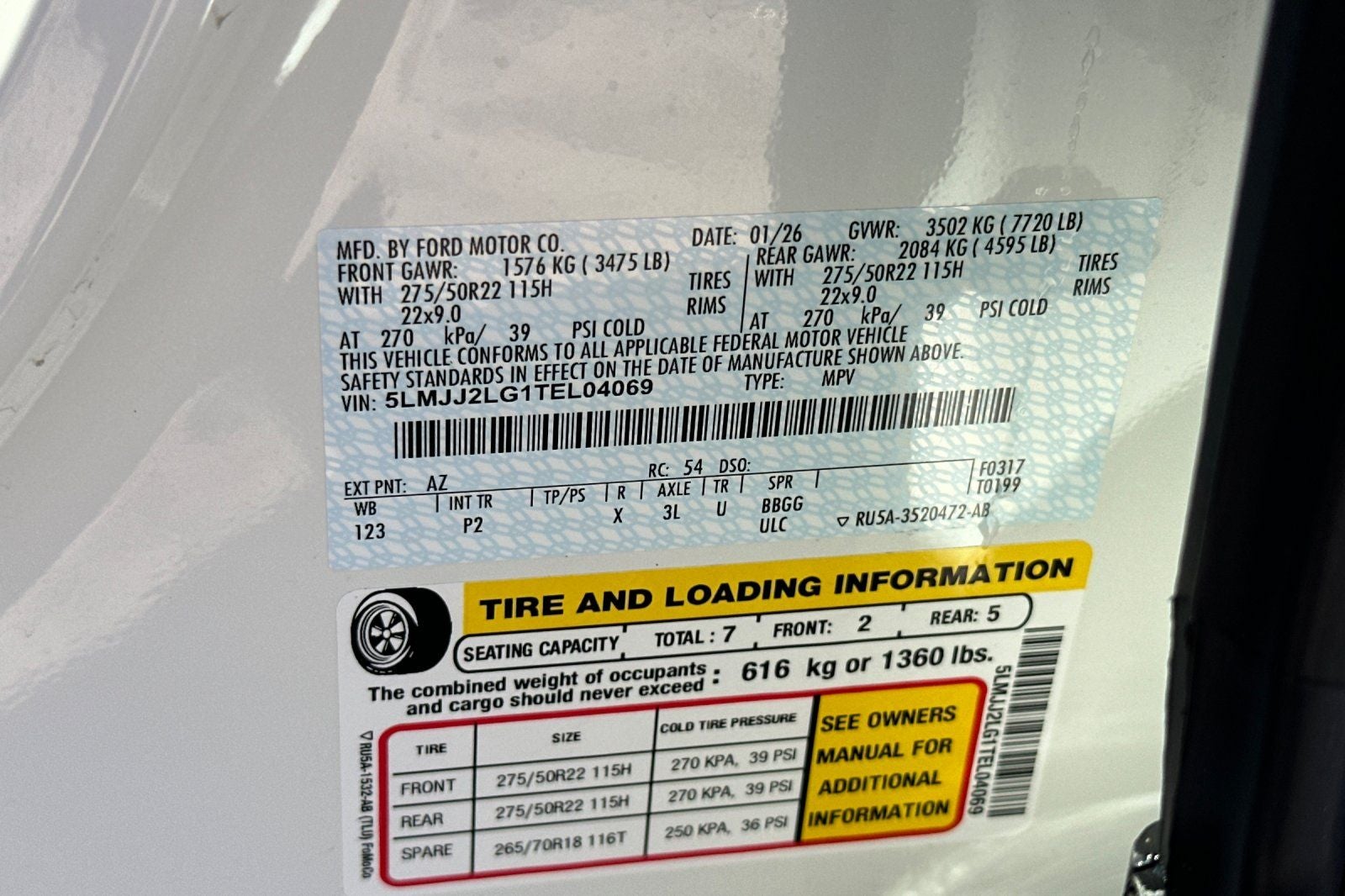 - Front Tire Size: P275/50HR22